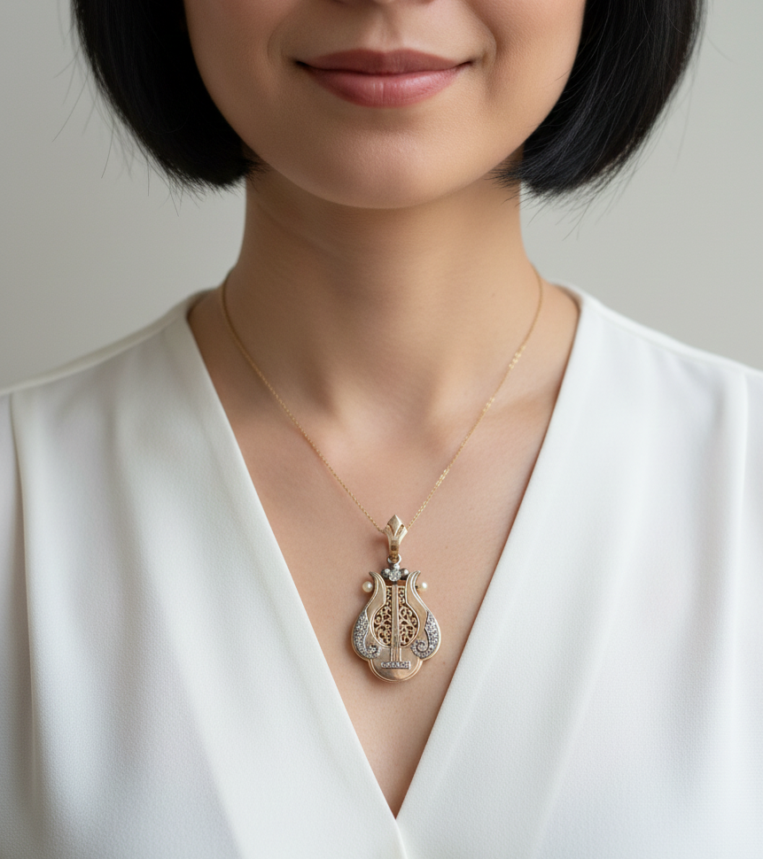 Victorian 18K Gold diamond lyr Vinaigrette Locket pendant