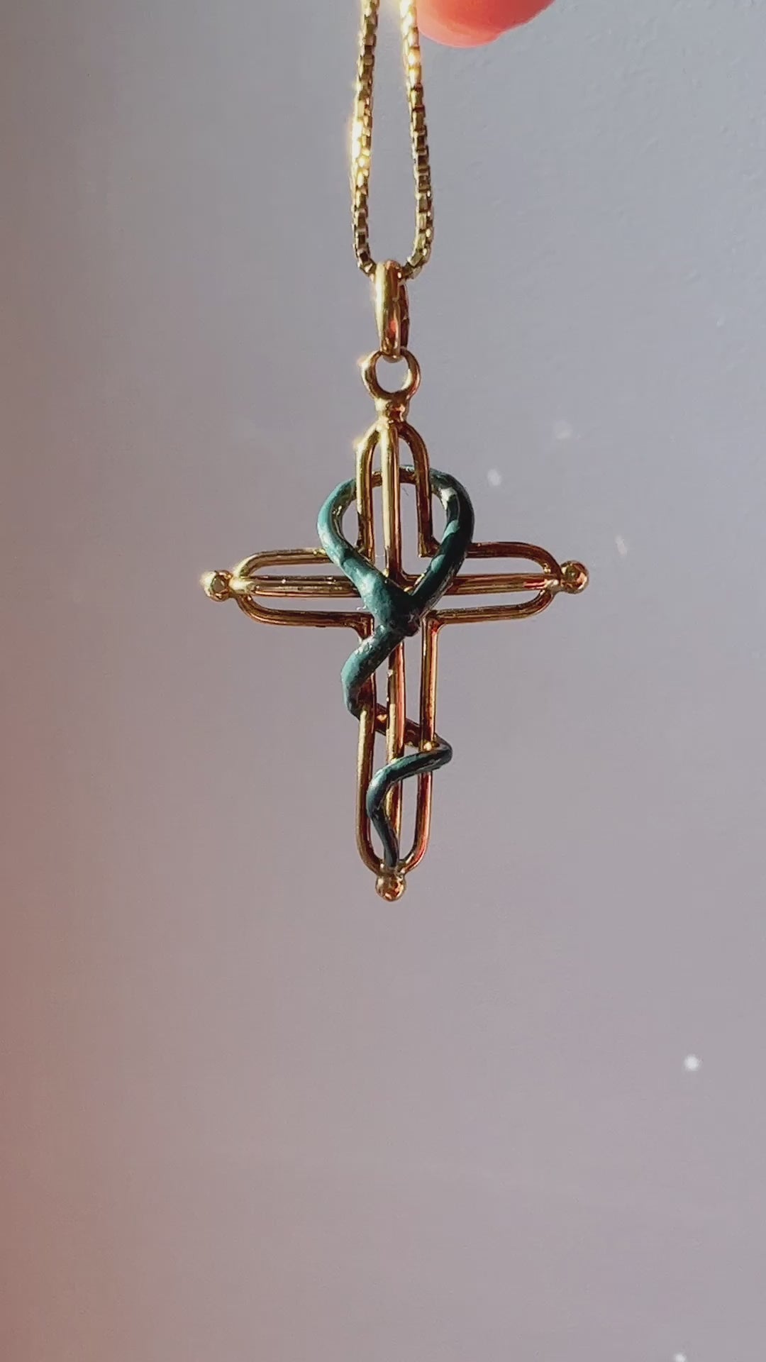 Victorian era 18K gold snake over a cross pendant
