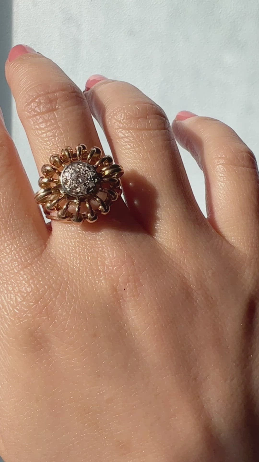 Art Deco 18K Gold diamond flower Filigree Ring