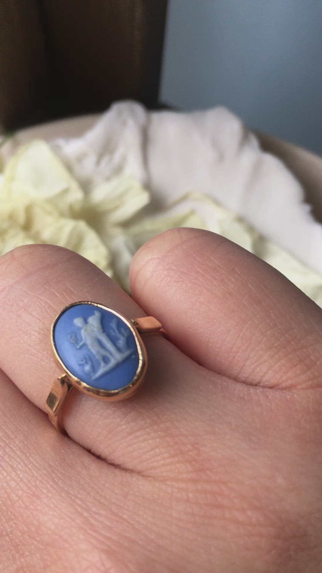 Antique Wedgwood blue cameo Mercury with caduceus 18K gold ring