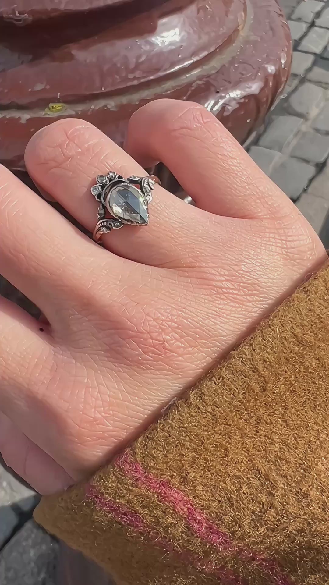 French work, Georgian era diamond heart ring in silver and in 18K yellow gold.