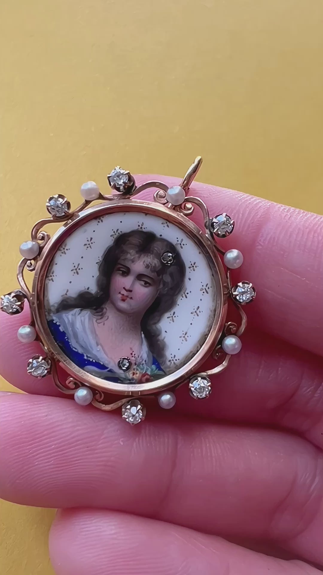 Remarkably preserved in her antique condition, this rare find defies the passage of time, offering a glimpse into the exceptional craftsmanship of a bygone era. An ideal choice for connoisseurs of antique miniature portrait jewelry or those who cherish unique, handcrafted treasures.