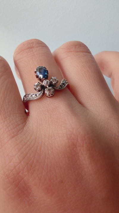Victorian era 18K gold blue sapphire diamond duchess ring