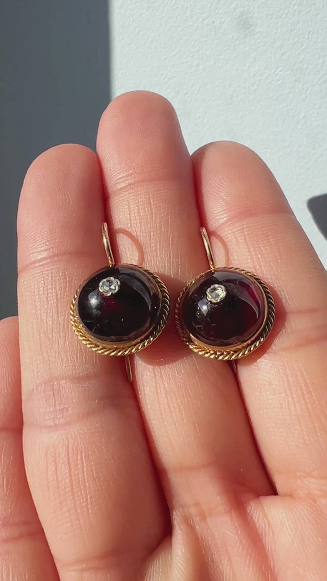 Victorian era 18K gold garnet cabochon diamond earrings
